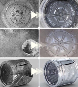 – Sạch sâu triệt để không cần tháo lắp lồng giặt.