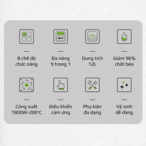 ✔️Đa dạng tính năng nấu ăn tự động chuyên nghiệp của OLIVO AF12 với 8+3 chế độ cài đặt sẵn đa chức năng